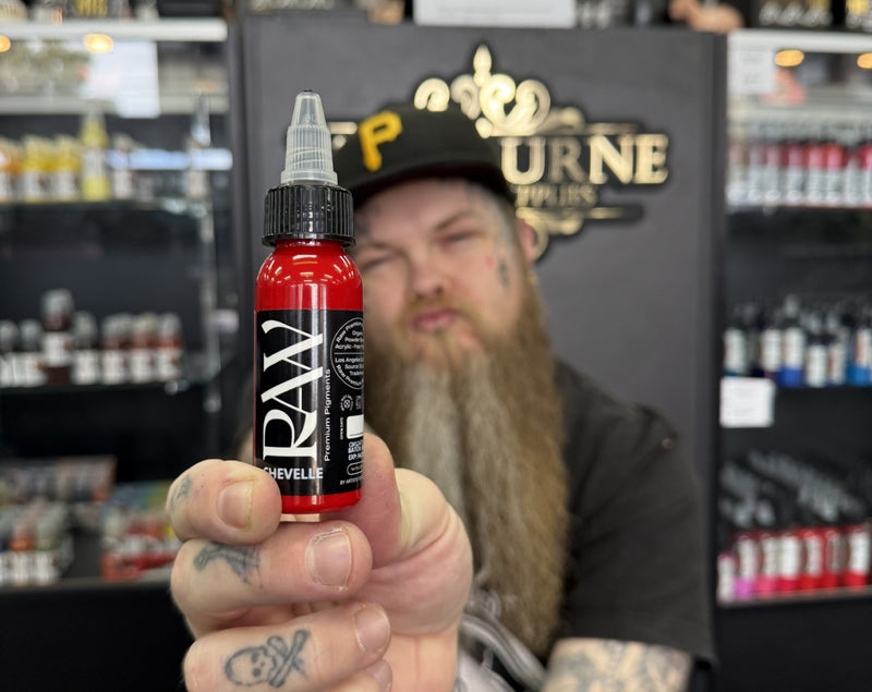 Chevelle Red by RAW Ink Pigments Meet Chevelle Red — a luminous, bright cardinal red that heals true to hue. One of Raw Inks most recently formulated reds, and without question...