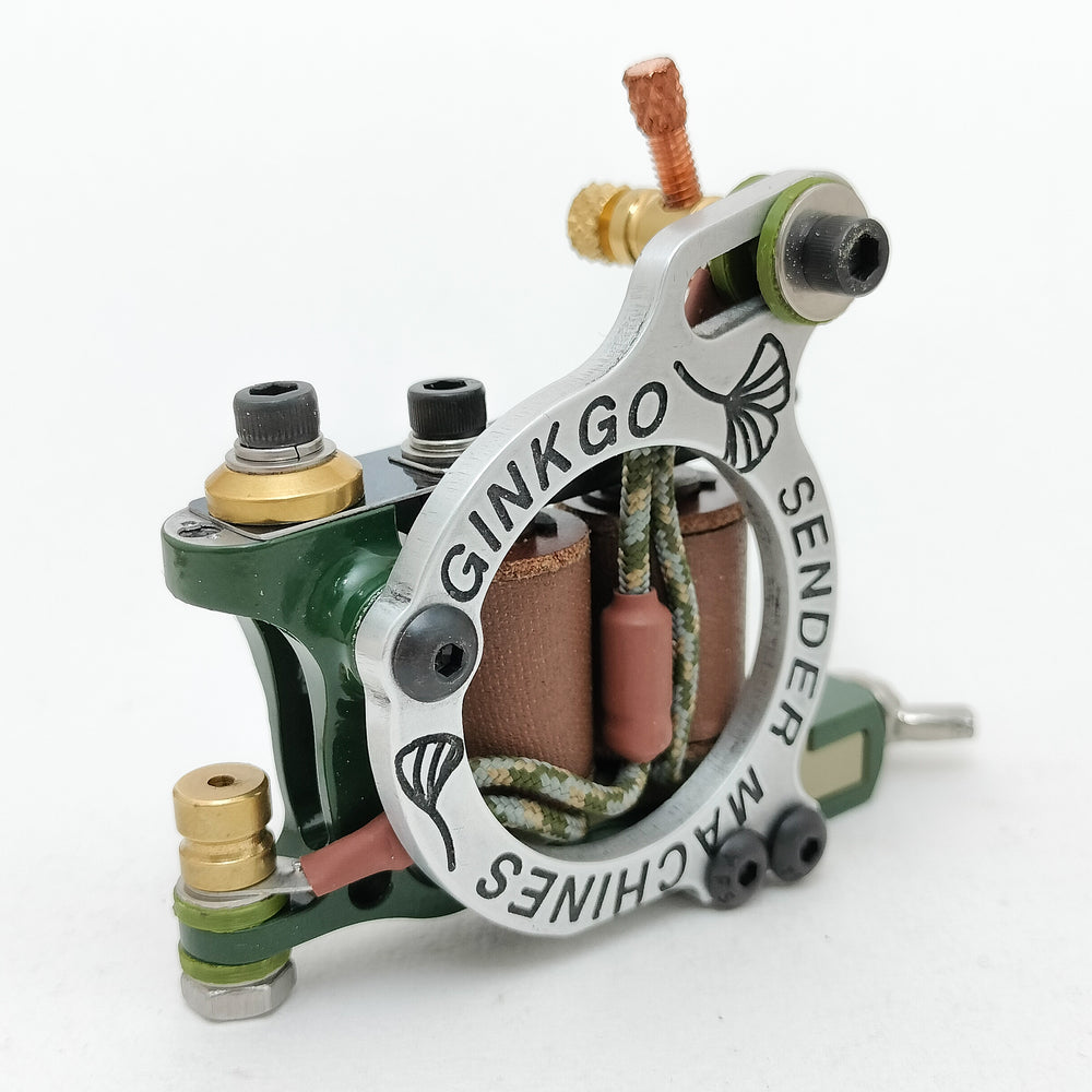 The GINKGO is multi-part, mixed metal tattoo powerhouse! Due to it’s makeup it’s light in the back and weightier at the front giving it a great balance and feel, even on a plastic tube. The frame is supported on both sides giving the machine great rigidity, increasing efficiency and smoothness.