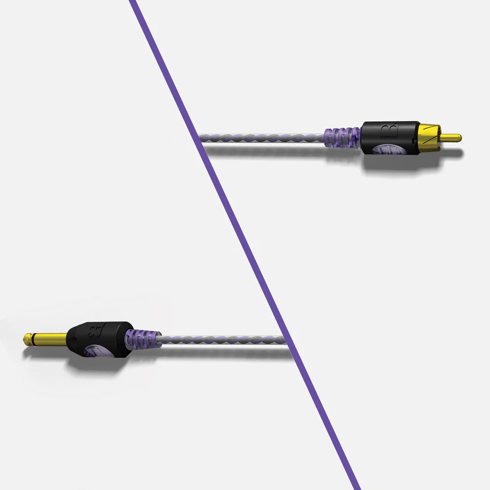 The Bishop 7’ Long Premium RCA Cord features a lightweight micro-barrel design that allows for easier movement and dramatically reduces the strain on the machine. The cord measures 7 feet in length with a gold-plated quarter inch jack mono plug on one end and a gold-plated split-tip center pin; it also has a segmented shield on the other end. Additionally, this cord features a heavy-duty frosted PVC cable jacket, which is designed to withstand medical grade sterilization solutions. The cord’s injection-molded tactile grips allow for cable longevity and durability.