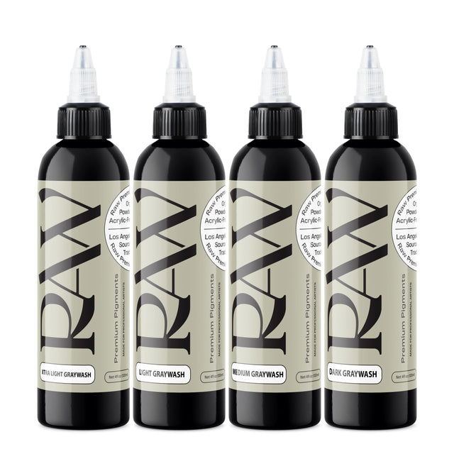 Our graywash set is value accurate and ensures consistent tones from batch to batch. Our wash sets are formulated with ideal concentration in mind so you won't be faced with tattoos that heal too light, especially over time. If you've been looking for a set you can trust in, look no further!