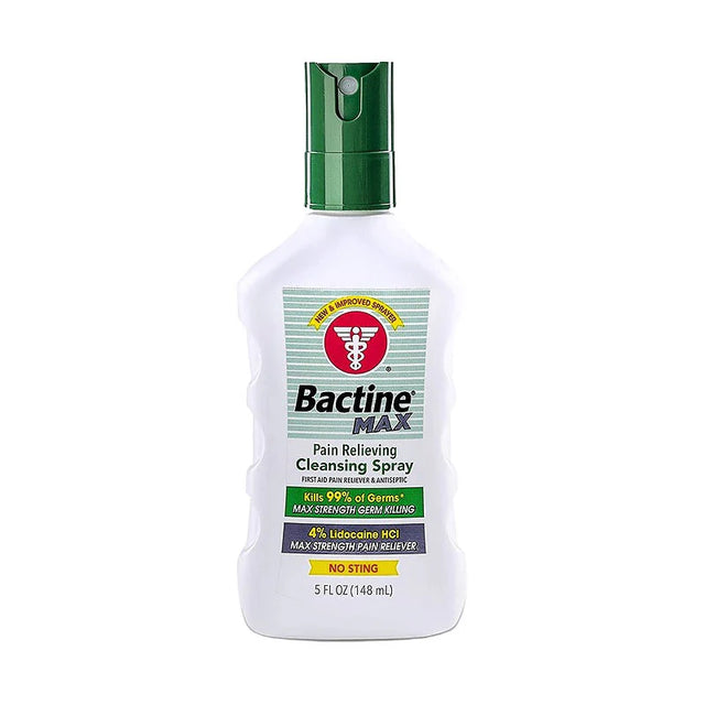 Pain RELIEF & First Aid: Bactine Max pain Relieving cleansing Spray is an antiseptic Spray that brings immediate pain relief & itch relief to Minor scrapes, cuts & Burns while cleansing & protecting minor wounds from infection without stinging or burning. For minor wound care: Bactine Max pain Relieving cleansing Spray effectively helps kill germs & prevent skin infection in minor cuts, scrapes, scratches, & Burns.