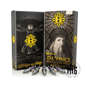 Da Vinci V2 Round Shader Cartridges are premium tattoo needles designed by Carlos Torres and Franco Vescovi, crafted by artists for artists. These cartridges feature a medium-tension safety membrane and a vent hole on the side for superior ink flow. Made from medical-grade plastic and 304 stainless steel, they ensure durability, precision, and smooth performance. Compatible with all twist-in style cartridge grips and machines, each needle is individually sterilized with EO gas for safe, professional use. Sold in boxes of 20.